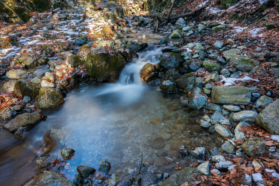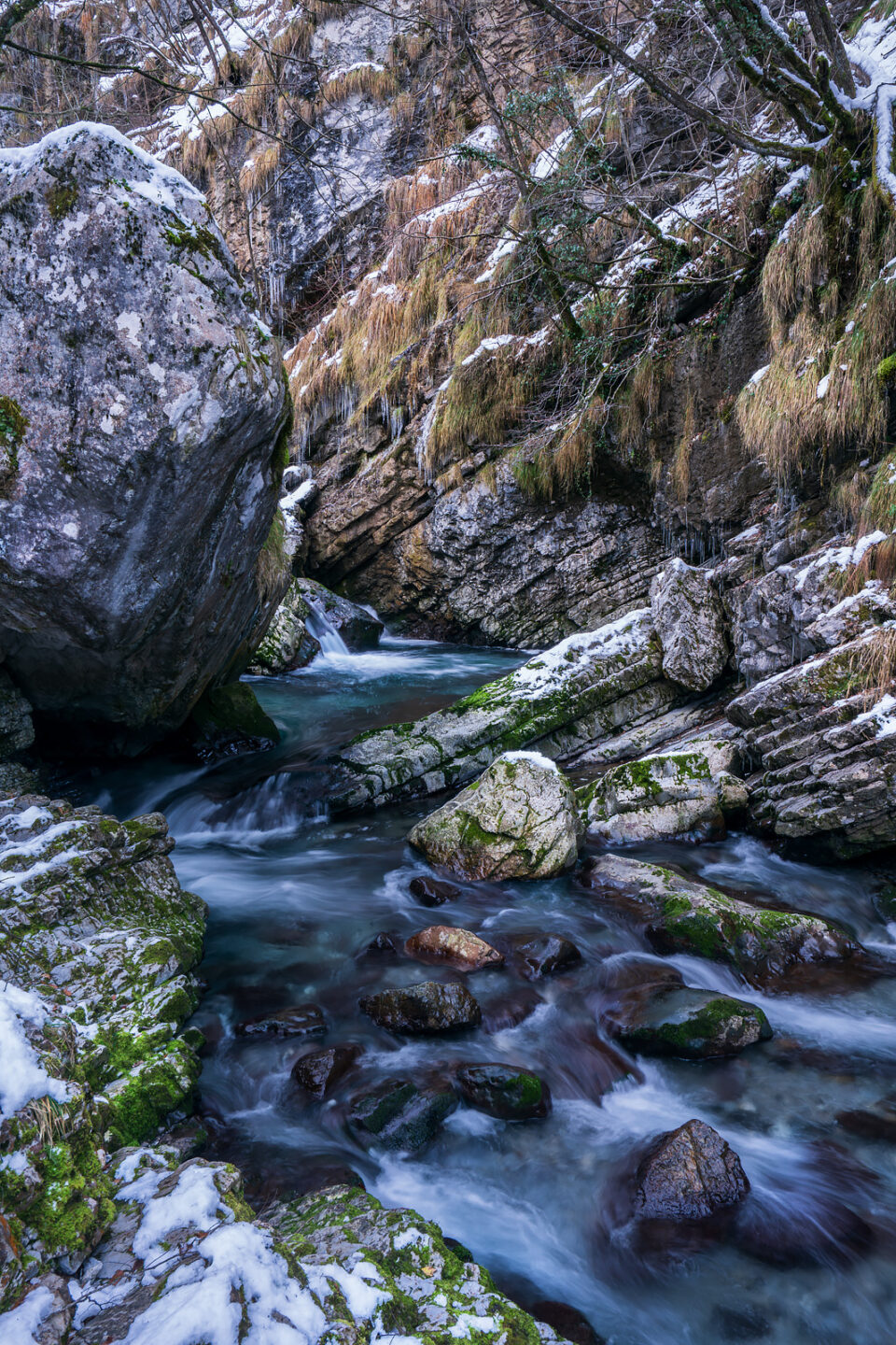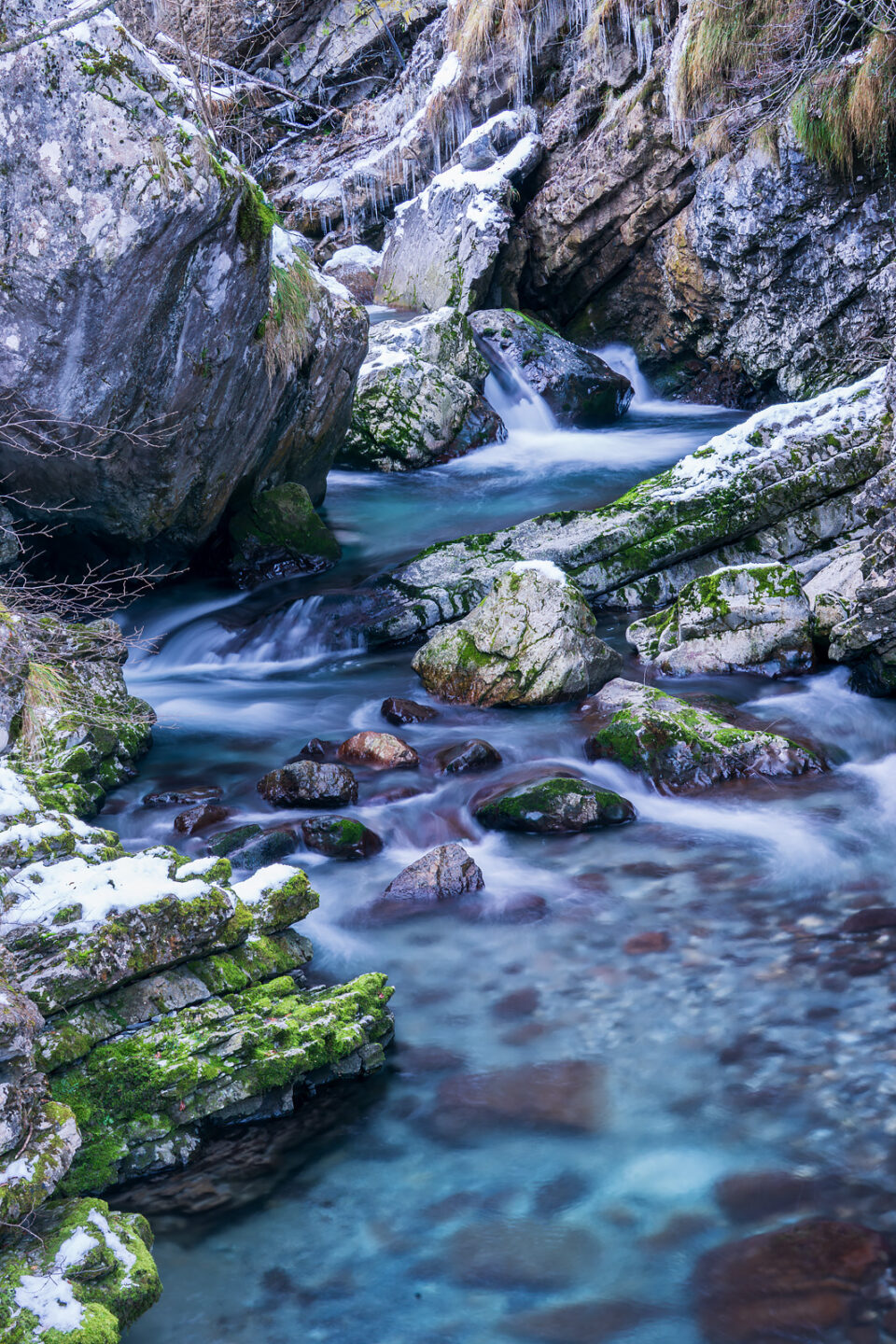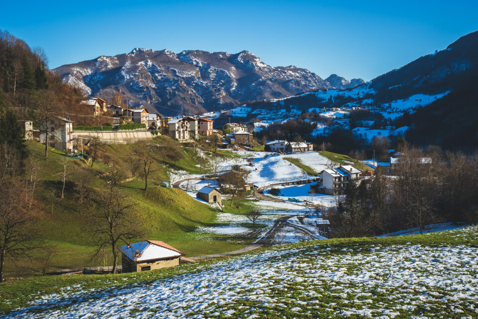 Near the small village of Vedeseta in the Taleggio Valley, a walk leads to the source of the Enna River. In winter, the river’s banks are filled with magic and charm